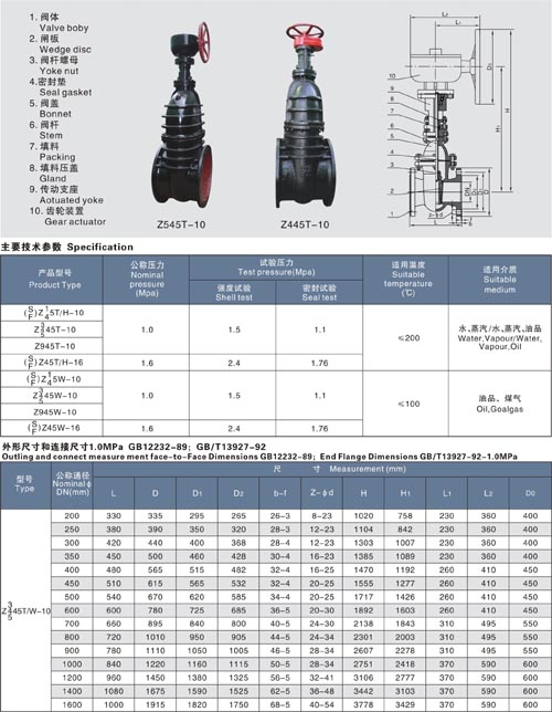 闸阀是最常用的截断阀之一,主要用来接通或截断管路中的介质; 闸阀适用的压力、温度及口径范围很大,尤其适用于中、大口径的管道。暗杆闸阀的传动螺纹位于阀体内部,在启闭过程中,阀杆只做旋转运动,闸板在阀体内升降。因此, 阀门的高度尺寸小。暗杆闸阀,通常在阀盖上方装设启闭位置指示器,以适用于船舶、管沟等空间较小和粉尘含量大的环境。楔式刚性单闸板结构简单,尺寸小,使用比较可靠,它适用于常温、中温的各种介质和压力的环境。广泛用于给排水、煤气、电力、冶金、石油、化工、轻纺以及城建等行业,在蒸汽、水、油类介质的管路上作启闭用。